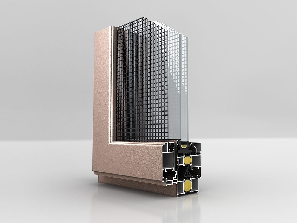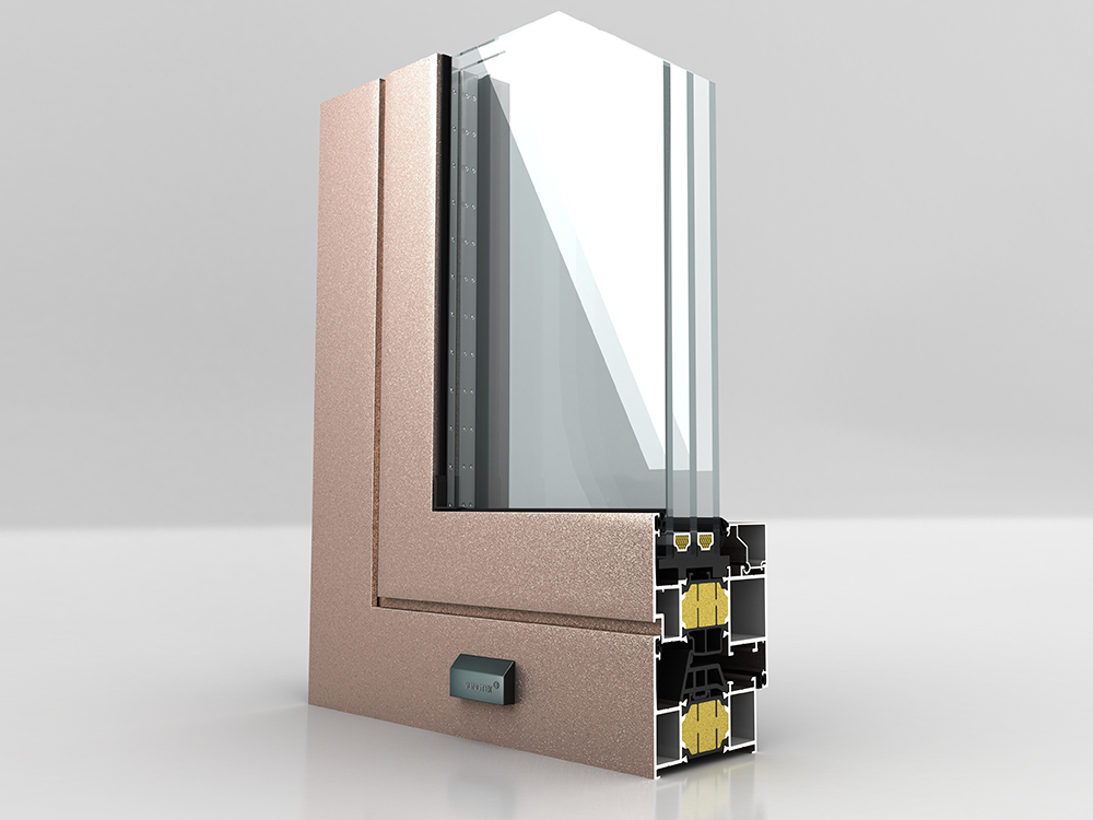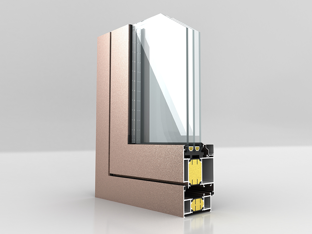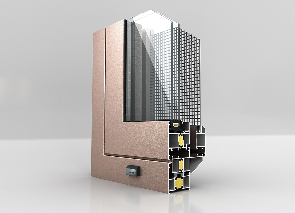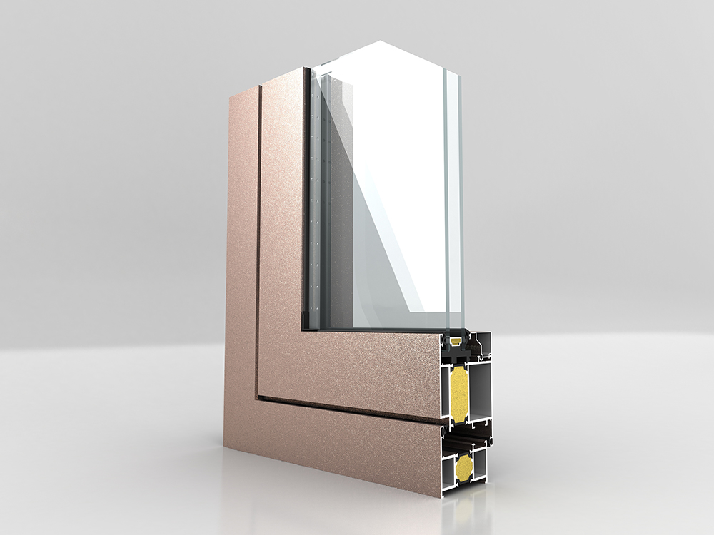■ 機(jī)械復(fù)合三腔結(jié)構(gòu);采用24mm寬PA66隔熱條 ■ 隔熱條腔內(nèi)采用高壓注高分子保溫材料;連續(xù)等溫面設(shè)置 ■ 型材壁厚2.0mm ■ 外框深度65mm;可做內(nèi)外雙色噴涂 ■ 玻璃標(biāo)配26mm,最寬可做38mm ■ 可標(biāo)配30厚鋁蜂窩板;外置線條 ■ 下檻可配標(biāo)準(zhǔn)門檻、低檻