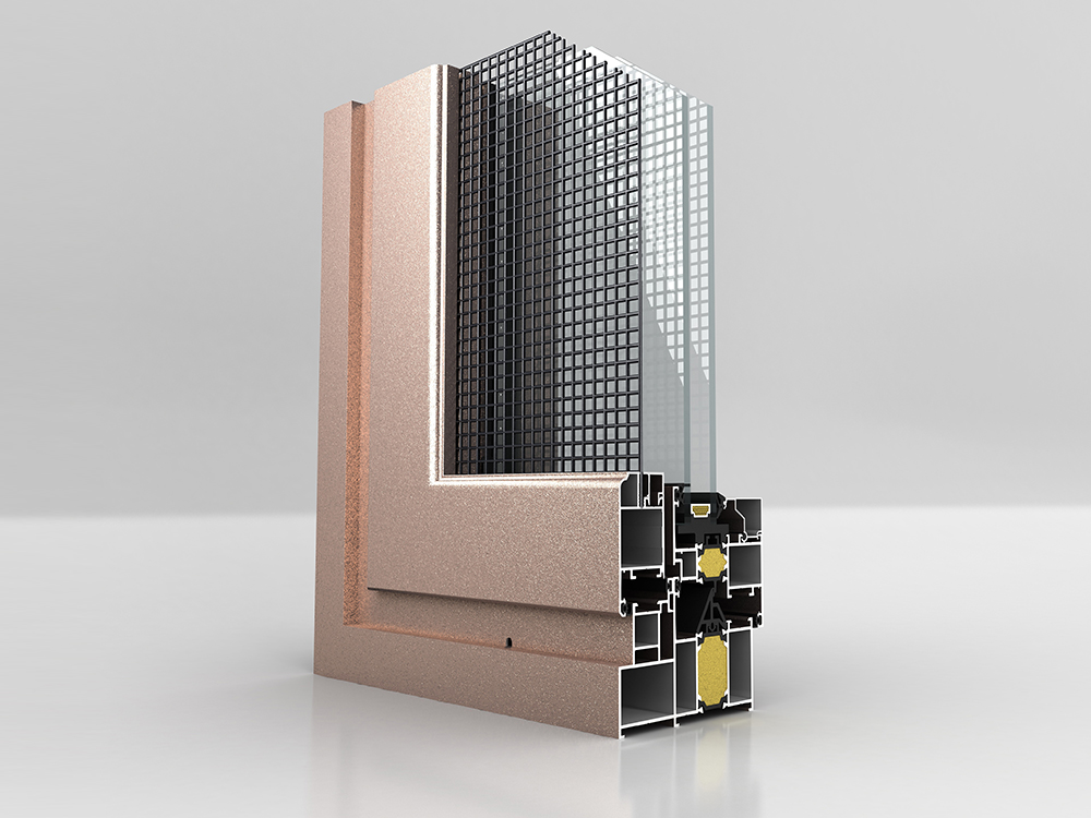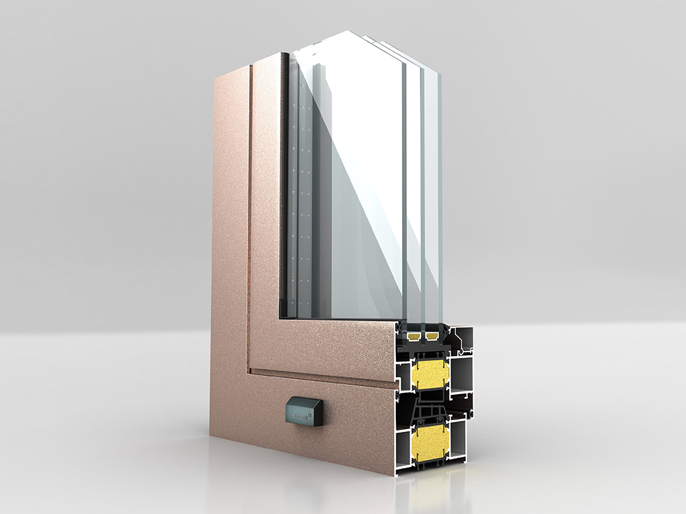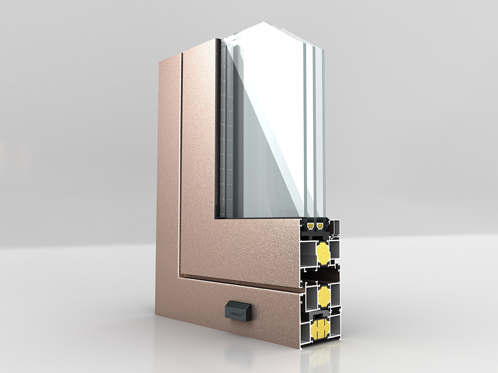 ■ 機械復合三腔結(jié)構(gòu);采用34mm寬PA66隔熱條 ■ 隔熱條腔內(nèi)采用高壓注高分子保溫材料;連續(xù)等溫面設(shè)置 ■ 外框配下沉式排水面;配可開啟式排水孔蓋 ■ 型材外框壁厚1.6mm ;開啟扇壁厚1.8mm ■ 外框深度75mm;可做內(nèi)外雙色噴涂 ■ 外開窗扇平齊處理;美觀防水